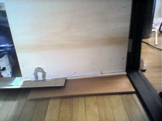 既に非常に重いですので、床との隙間の確保とかは何かを下にかまさないととても取り付けできません、完成してからよりもよほど位置決めが楽なので先にやっといた方が賢そうです。